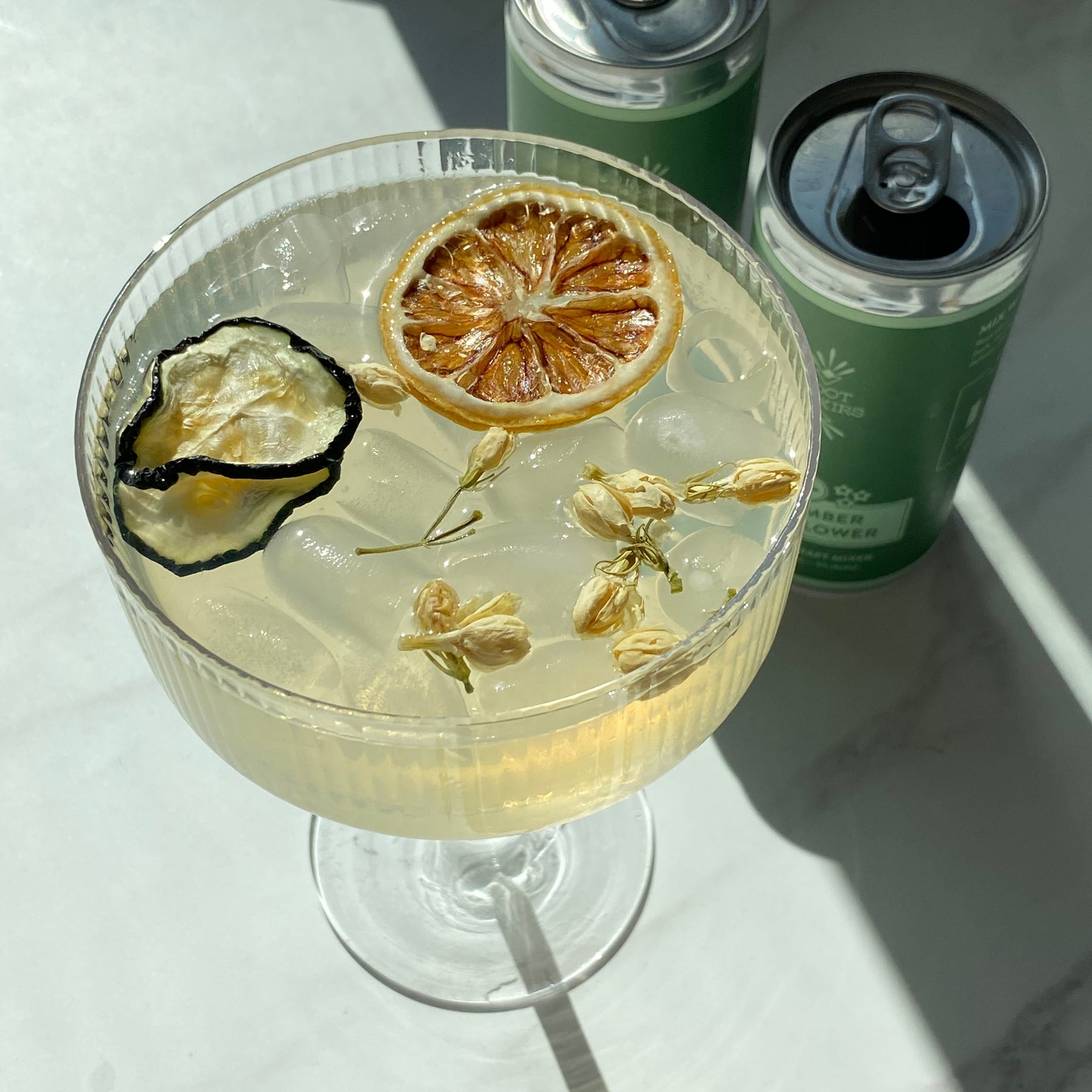 Cucumber Elderflower: Water, Sugar Cane, Lemon Juice, Elderflower, Citric Acid, Cucumber Extract, *Potassium Sorbate